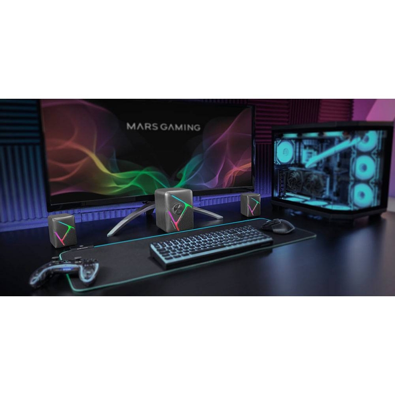 Colunas Mars Gaming MS-H21 Gaming Stereo 2.1 RGB 3D Surround 35W Peak Brancas