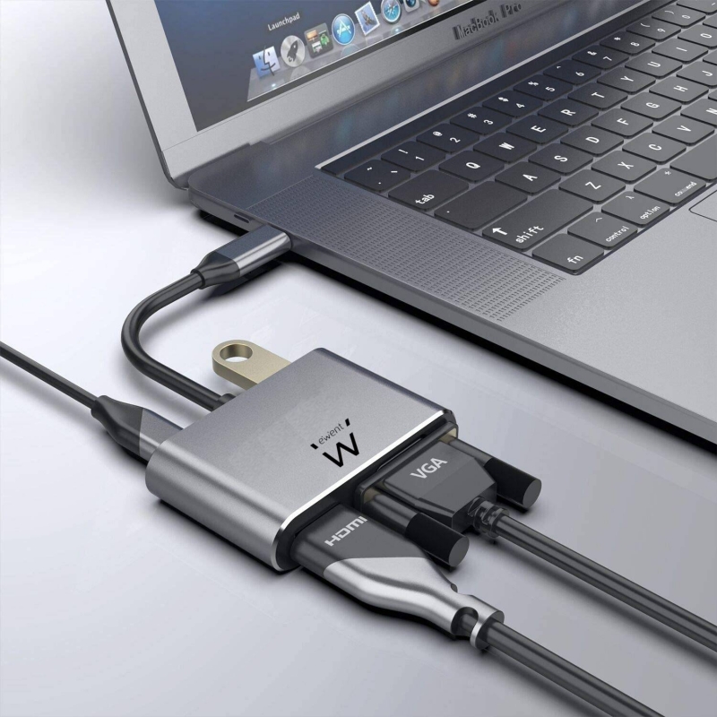 Usa o EW9700 para transformar o seu portátil com USB-C numa estação de trabalho conectando apenas um cabo USB-C. Este adaptador multiporta amplia o seu portátil com um monitor 4K via HDMI ou 1080p via VGA.