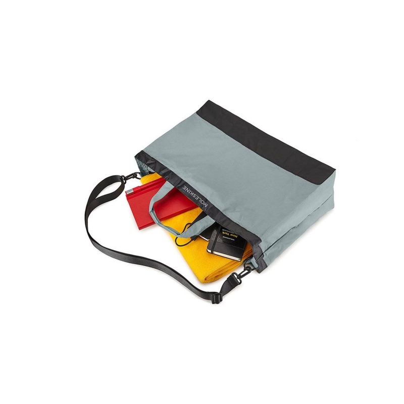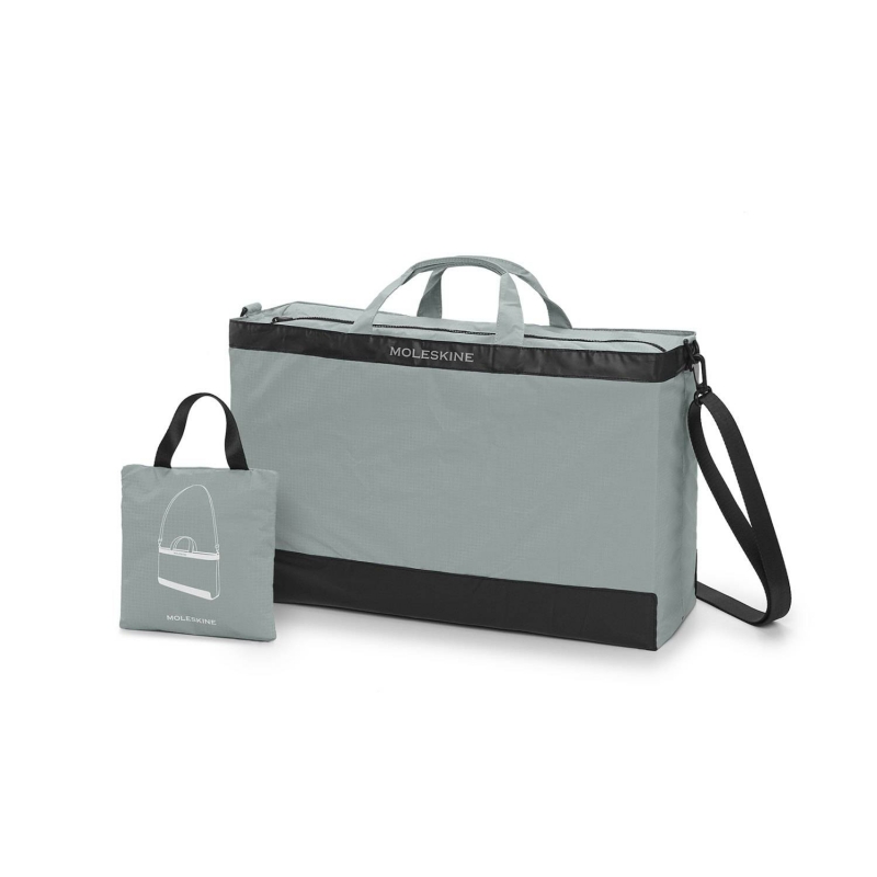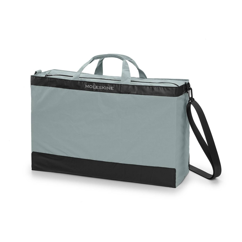 Multiuso, lavável e de tamanho generoso, a mala dobra-se numa bolsa limpa quando não está em uso. Possui alças curtas com cores combinadas e uma alça de ombro preta destacável para viagens mais longas. O logotipo Moleskine é discretamente impresso na parte superior.
