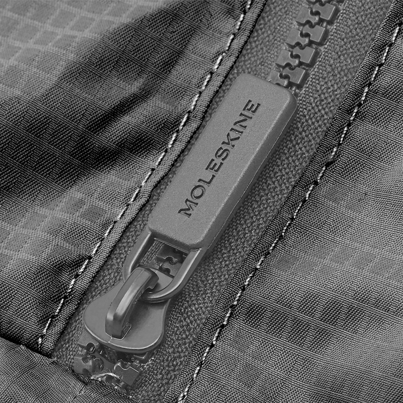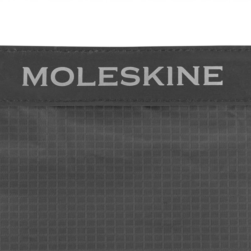 Multiuso, lavável e de tamanho generoso, a mala dobra-se numa bolsa limpa quando não está em uso. Possui alças curtas com cores combinadas e uma alça de ombro preta destacável para viagens mais longas. O logotipo Moleskine é discretamente impresso na parte superior.