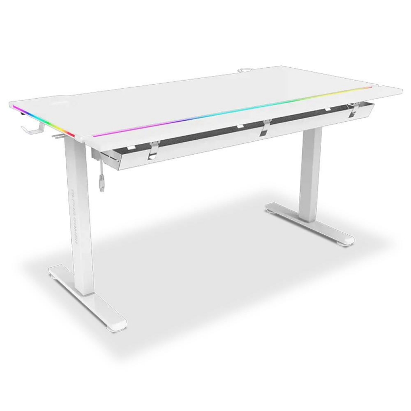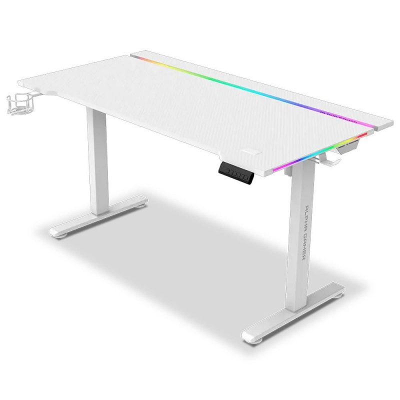 Secretária Elevatória Elétrica Alpha Gamer Zorya RGB (140x72cm) Gaming Station Branca
