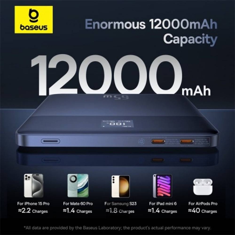 Carregamento rápido: Equipado com tecnologia de carregamento rápido de 65W, suporta entrada e saída de carregamento rápido, com uma entrada máxima de 60W e saída máxima de 65W através das portas Type-C.