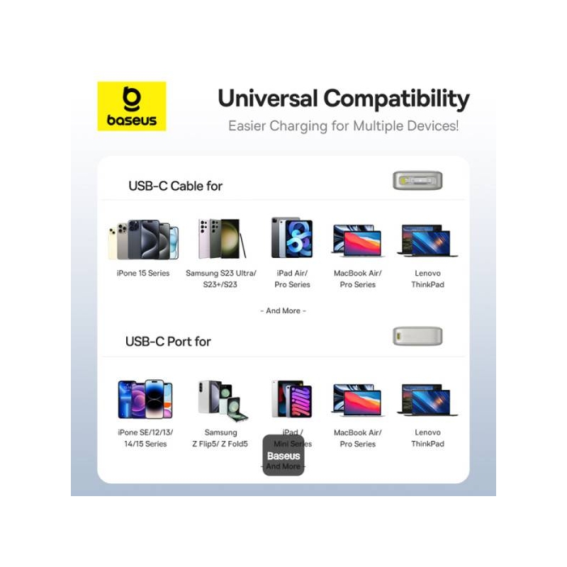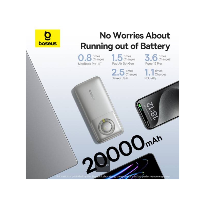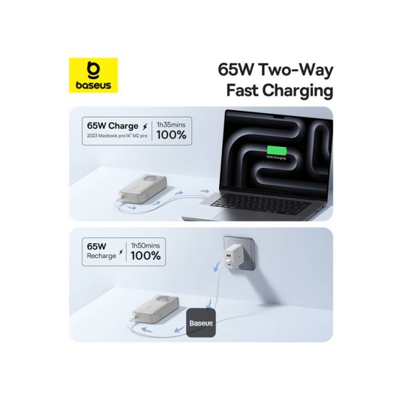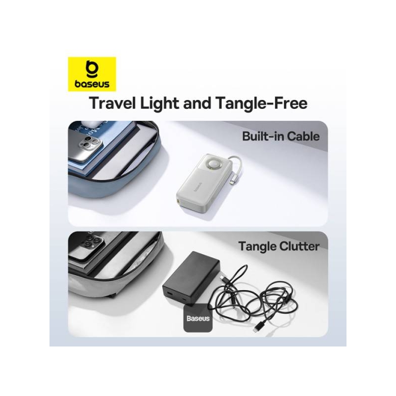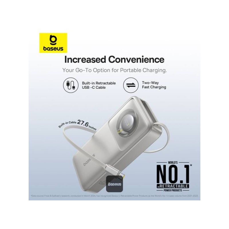Powerbank Baseus Free2Pull Fast Charger 65W 20000mAh Cinzenta c/ Cabo USB-C Integrado