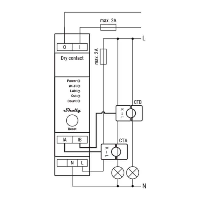 Módulo Automação Shelly Pro EM-50 - Medidor de Energia Monofásico Serie PRO – Calha DIN