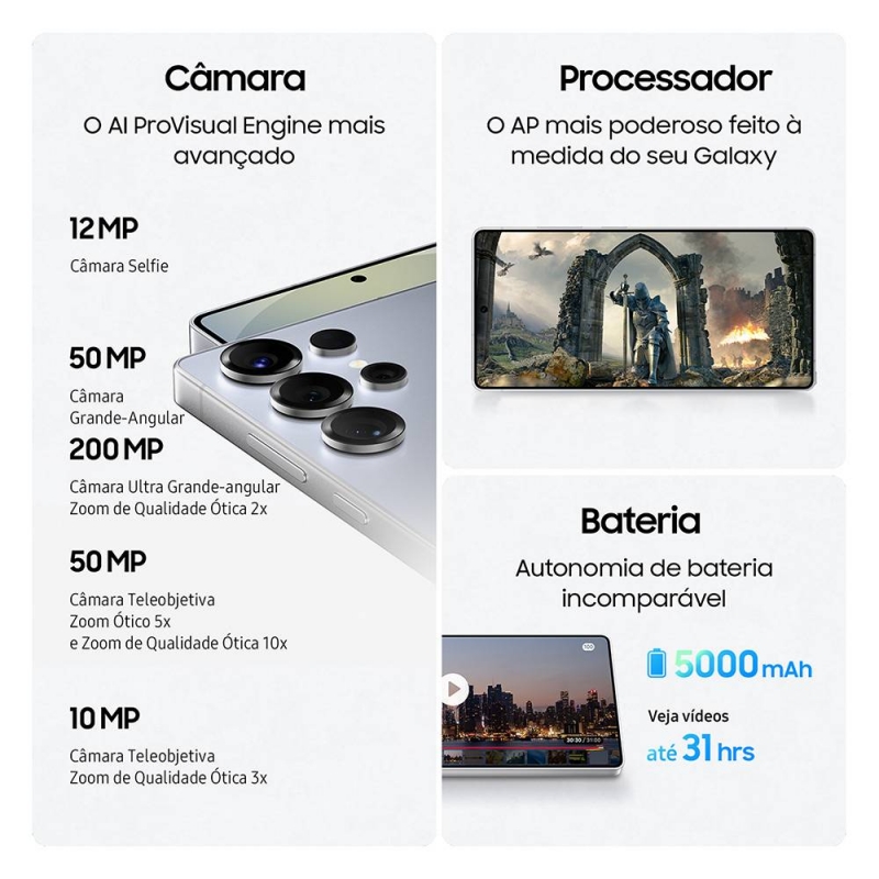 Processador: Snapdragon 8 Elite for Galaxy (3nm) com Ray Tracing