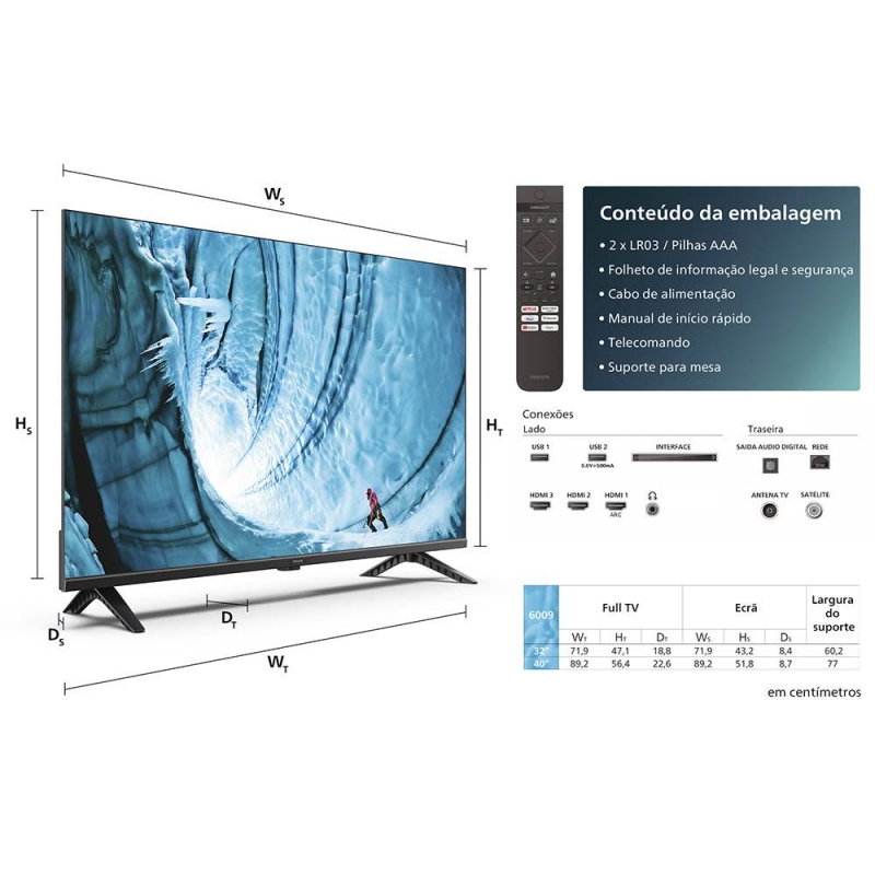 Televisão Smart TV Philips 6009 Series (2024) 32"/80cm LED HD Ready Dolby Audio Titan OS