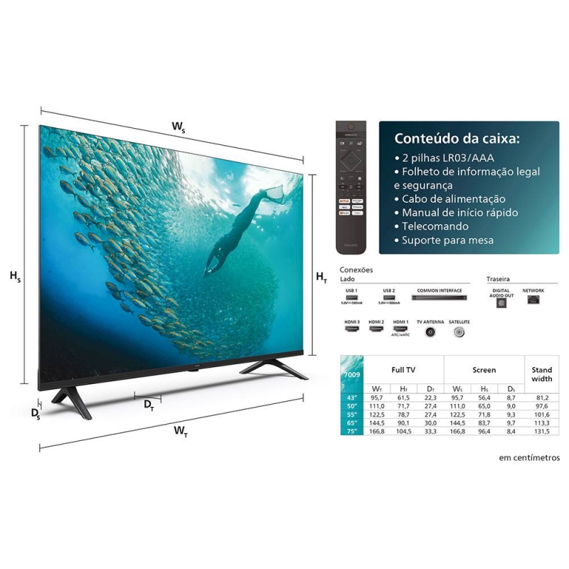 Televisão Smart TV Philips 7009 Series (2024) 43"/108cm LED 4K UHD Dolby Atmos Titan OS