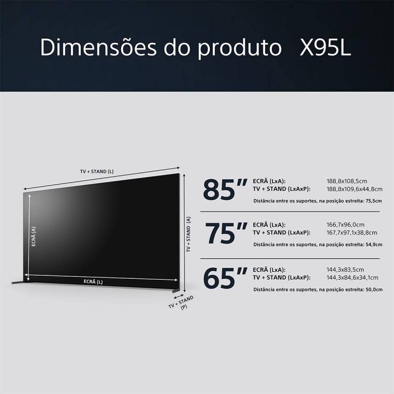 Tamanho do ecrã: 85” (84.6") / 215 cm