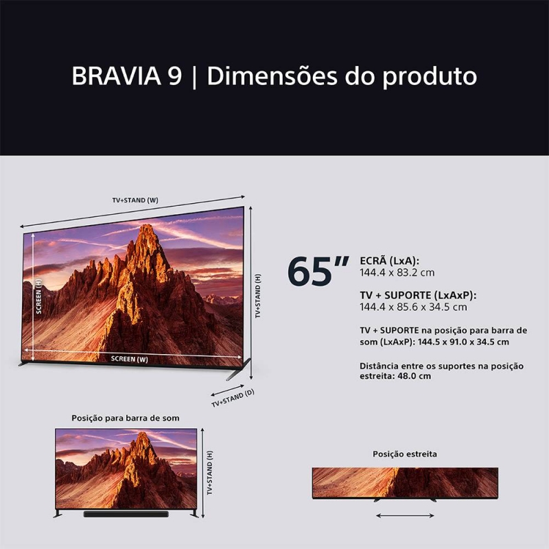 Tamanho do ecrã: 65” / 164 cm