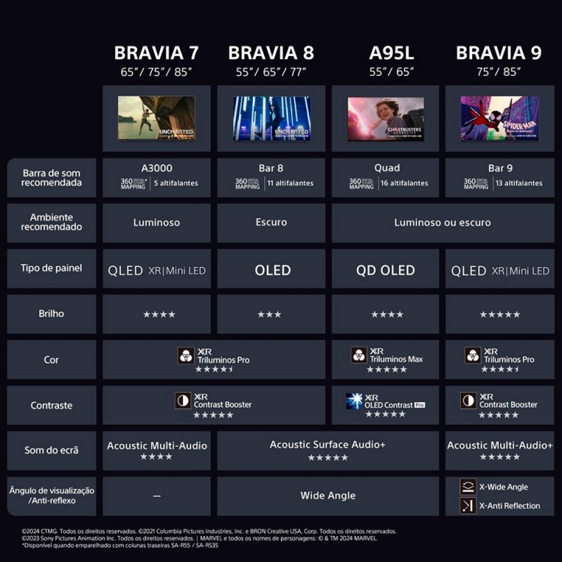 Televisão Smart TV Sony Bravia XR Série XR70 (2024) 85"/216cm Mini-LED 4K UHD Google TV