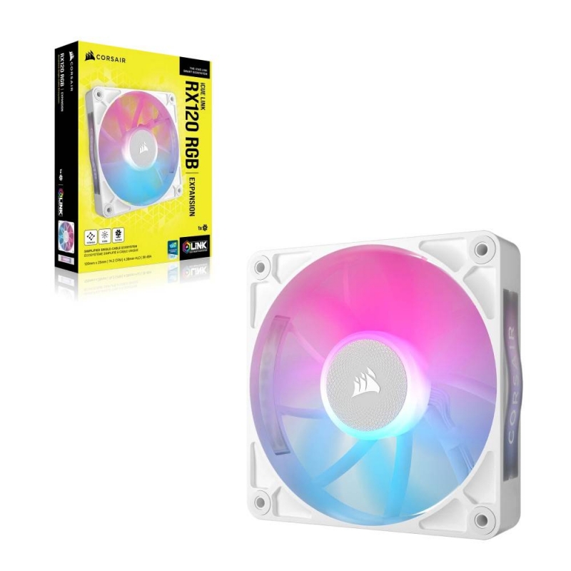 Ventoinha 120mm Corsair 2100RPM iCUE Link RX120 RGB 4 Pinos PWM Branca (Single Pack)