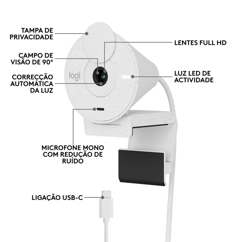 Início|Periféricos|Webcams|Webcam Logitech Brio 300 Full HD 1080p USB Type-C Branca